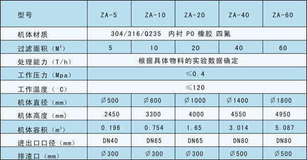 ZA自清式滤芯过滤机技术参数表