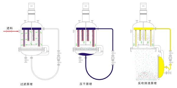 产品简介 1.欧尔福PHS微孔过滤机,可过滤,压干,洗涤的多功能过滤机; 2.过滤机上加搅拌机,实现洗涤快速且均匀; 3.滤液滤渣能共同回收; 4.可在机内外加保温夹套等装置; 5.PE,PA微孔过滤管也可采用加外套的过滤材料等过滤介质满足不同用户需求; 6.可用气体反吹下渣和再生过滤管; 7.完全密闭过滤无泄露、安全生产、无气味、无任何环境污染。