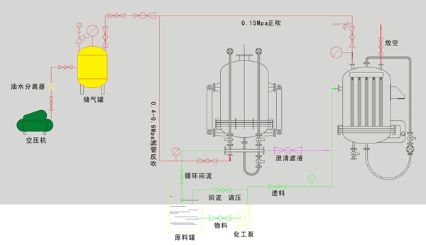 产品简介1.过滤针对液体量少,含固量大,浓度高的固液分离;2.过滤精度0.2-100微米;3.PE,PA微孔过滤管,最高温度80-100摄氏度;4.滤管可气体反吹再生,长时间使用;5.过滤压干一机完成;6.密闭过滤,无气味外溢安全生产。