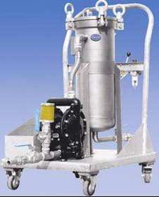 ☉ 所有元件安装于手推车上,拥有紧凑的结构。 ☉ 袋式过滤器可使用标准的1#和2#过滤器,材质为SS304或SS316L。 ☉ 小车本体采用SS304材质,抗腐蚀能力强。 ☉ 流量:0-35m3/h(对于清水);最高过滤精度:0.2um ☉ 泵与过滤器之间采用软管连接,消除了气动泵震动带来的负面影响 ☉ 结构简单,轻便灵活,易于工人操作,可随意移动至生产线上进行工作 ☉ 泵可选用隔膜泵、离心泵、齿轮泵。