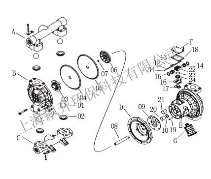 QBP系列气动隔膜泵零部件图解